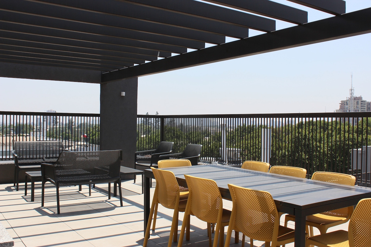 Welcome! Enjoy your stay in a brand-new apartment, designed for you to relax after a day exploring the city. Located in the heart of Santiago, you'll be steps from the subway, buses, shops, restaurants, museums, and the best views of the city. Paseo Bulnes, Almagro Park, La Moneda, Cerro Santa Lucía, Lastarria/Barrio Italia. It has everything you need: a comfortable bed, a fully-equipped kitchen, Wi-Fi, and plenty of amenities. Everything you need to explore Santiago!