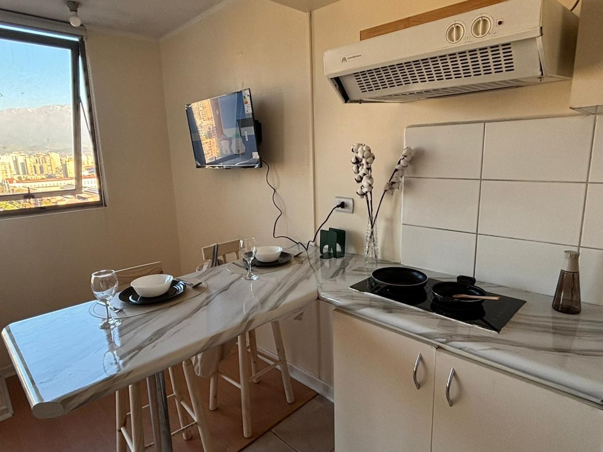 🏡 Comfortable Apartment with Terrace and Excellent Location in Santiago Centro Welcome to your space in Santiago! This cozy apartment is designed for travelers seeking comfort, a great location, and a practical, peaceful experience in the city. Whether you're visiting for work, tourism, or to attend a concert at Movistar Arena, you'll be well-connected and have everything you need.
