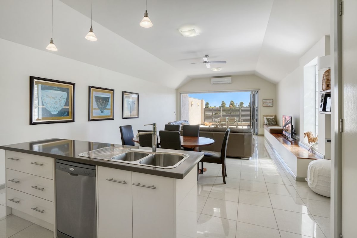 Villa Irene is an elegant and comfortable space to stay and relax. Enjoy the light filled fresh & spacious lounge, dining, bedroom (queen bed) and bathroom with roomy shower & twin handbasins. A pod coffee maker, stove/oven and microwave complete the kitchen. Free wifi, netflix, kayo, disney and TV also blue tooth soundbar for your own playlist. Outdoor area has sitting area and dining table. Reverse cycle air conditioner for your comfort. 850 metres to local centro shopping centre.