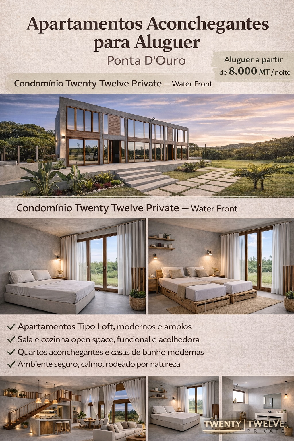 Twin loft acolhedor em Ponta do Ouro, perfeito para férias de praia. Espaço privado, tranquilo e com estilo, situado a apenas 2 minutos da praia. O loft dispõe de 2 quartos confortáveis 1 cama de casal e 1 camas twin, além de kitchenette equipada e casa de banho, rodeado por natureza e perto de bons restaurantes locais, é o lugar ideal para desfrutar de águas calmas e cristalinas, pores do sol e momentos inesquecíveis. Perfeito para casais, escapadinhas românticas ou famílias até 4 pessoas.