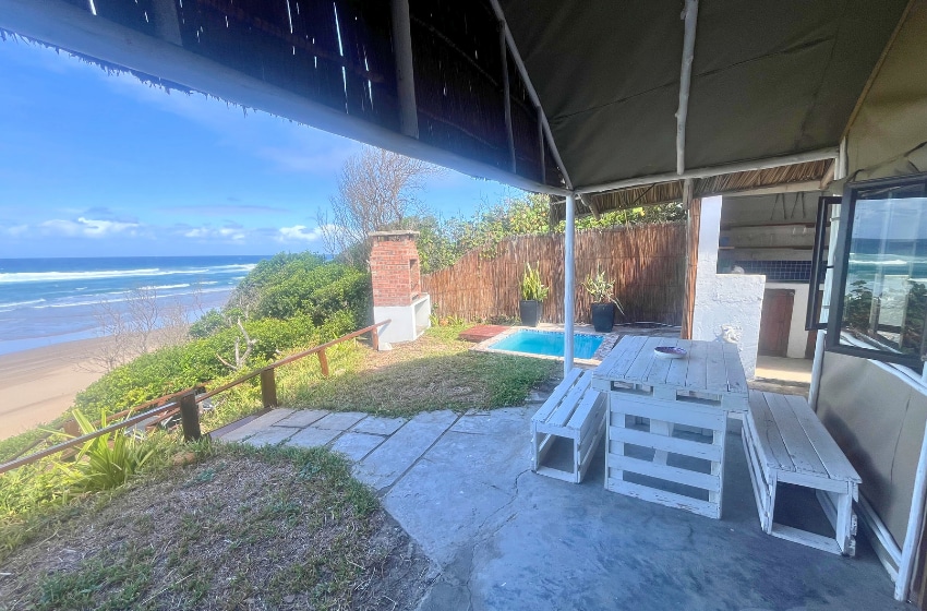 Escape to a unique coastal retreat where the bush meets the beach at Baleia Azul Tent No. 8, located within the tranquil Baleia Azul Estate in Ponta Mamoli. Surrounded by natural vegetation and overlooking the ocean, this luxury safari-style tent offers a peaceful setting for guests looking to unwind while staying close to nature.