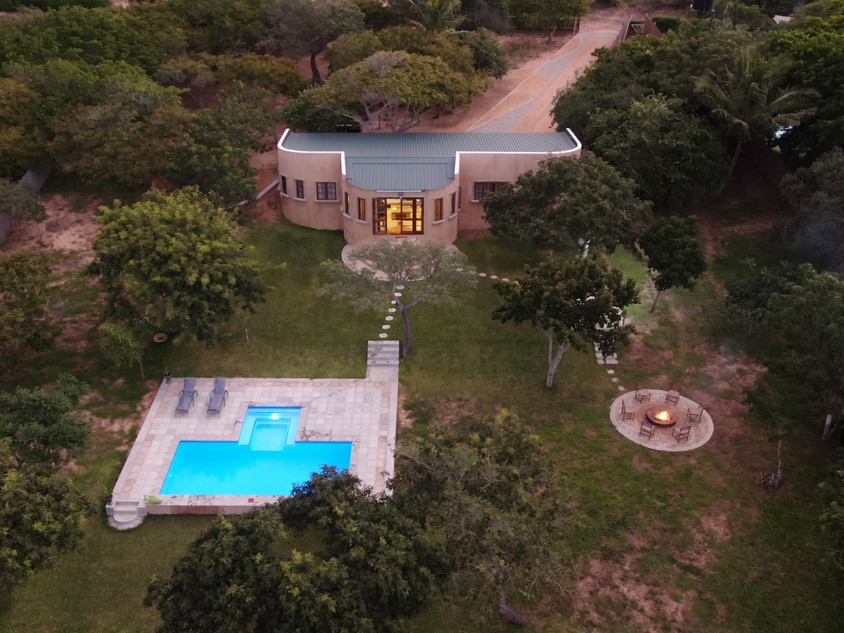 This double storey thatch roof house is a quick, 3-minute walk from the beach. There is a boma with a fire pit and seating, as well as an outside deck living area with a large dining table that overlooks the swimming pool and garden.