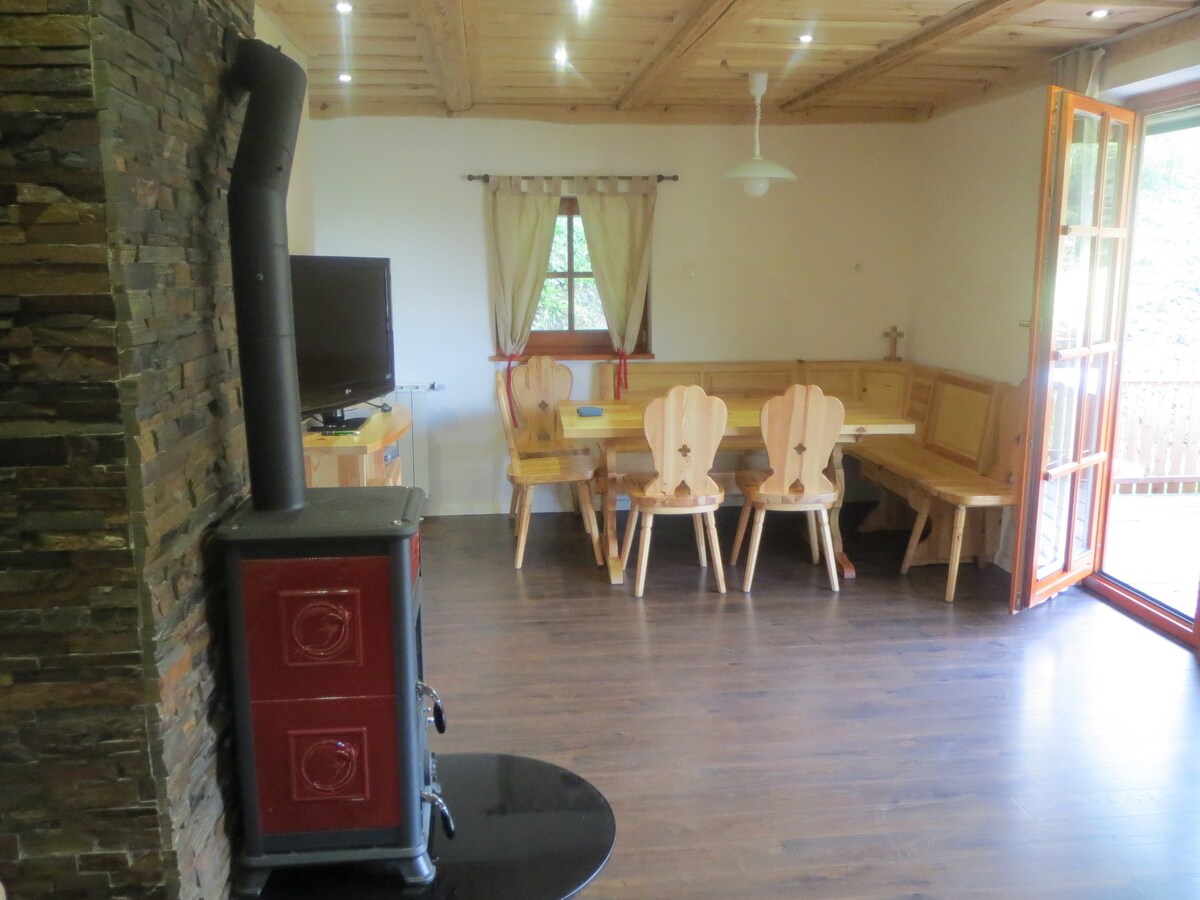 Challet "Studio Alpika" is a cosy wooden lodge located in Slovenian Alps. It's a 34 m2 studio, fully furnished with all ammenities and fully equipped kitchen (dishwasher, microwave, fireplace, Wi-Fi...). It can accommodate up to 3 adults in one separate room with small double bed and convertible sofa in a living room. It offers a relaxing retreat in an unspoiled nature, sorrounded by forest and mountains. The guests can chill out in a garden fitted with loungers , table and outdoor kitchen.