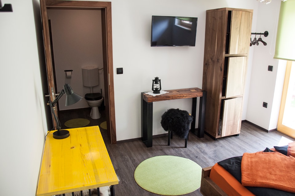 In a peaceful village setting, we have built five modern air-conditioned apartments located in log houses. You can enjoy the beautiful scenery or you can pamper yourself in our wellness (additional payment). You can also swim in the lake, take boat rides, go fishing, go ice-skating in the winter, children can play in the playground, enjoy the garden and use the barbecue, complimentary sunbeds, and rent a bike, cross-country skis or a snowmobile, adrenaline ride with zorb.