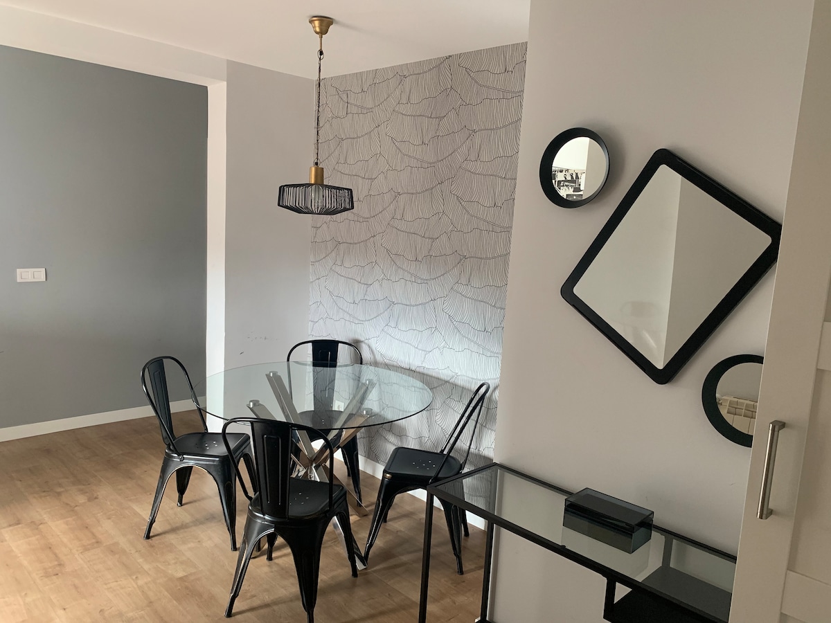 Apartamento nuevo de lujo con un diseño moderno y acogedor, a 3 minutos a pie de la Plaza Mayor y a escasos minutos a pie de los principales puntos de interés turístico de la ciudad de Burgos. Dispone de 1 habitación con 1 cama de 150x200 cm, zona de vestidor y 1 baño completo con ducha. El salón-comedor dispone de un sofá cama donde se permite capacidad para 2 personas más. WIFI gratuito, TV de 55” y cocina completamente amueblada.