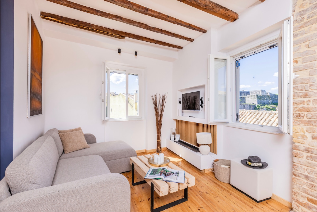 Τraditional 3rd floor (over the ground floor) apartment, without a lift, five min walk from two small beaches of the city. There is a balcony over Platy Kantouni, in one of the most beautiful neighborhoods: Porta Remounta. Just a few minutes' walk away: Liston, Old Fortress, big squares (Spianada), theTown Hall square, church Saint Spyridon etc . In the neighborhood there are a tour agency, very good traditional tavern and Italian restaurants and all food shops .