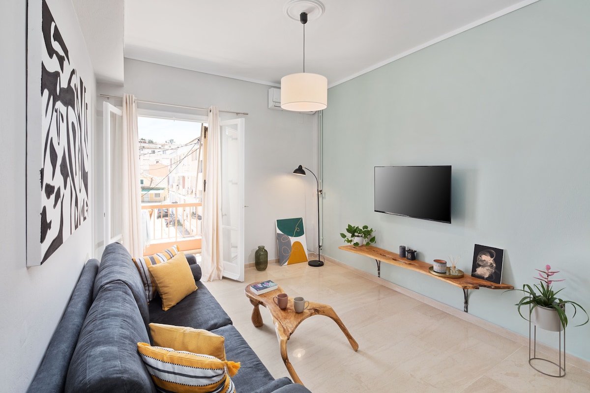 Τraditional 3rd floor (over the ground floor) apartment, without a lift, five min walk from two small beaches of the city. There is a balcony over Platy Kantouni, in one of the most beautiful neighborhoods: Porta Remounta. Just a few minutes' walk away: Liston, Old Fortress, big squares (Spianada), theTown Hall square, church Saint Spyridon etc . In the neighborhood there are a tour agency, very good traditional tavern and Italian restaurants and all food shops .