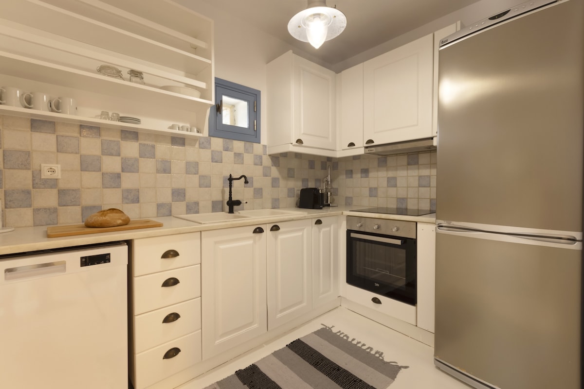 Apartment with simple decoration in Cycladic tones so as to offer the visitor a comfortable and friendly environment. It is bright throughout the day and what makes it special is its location in the center of Batsi