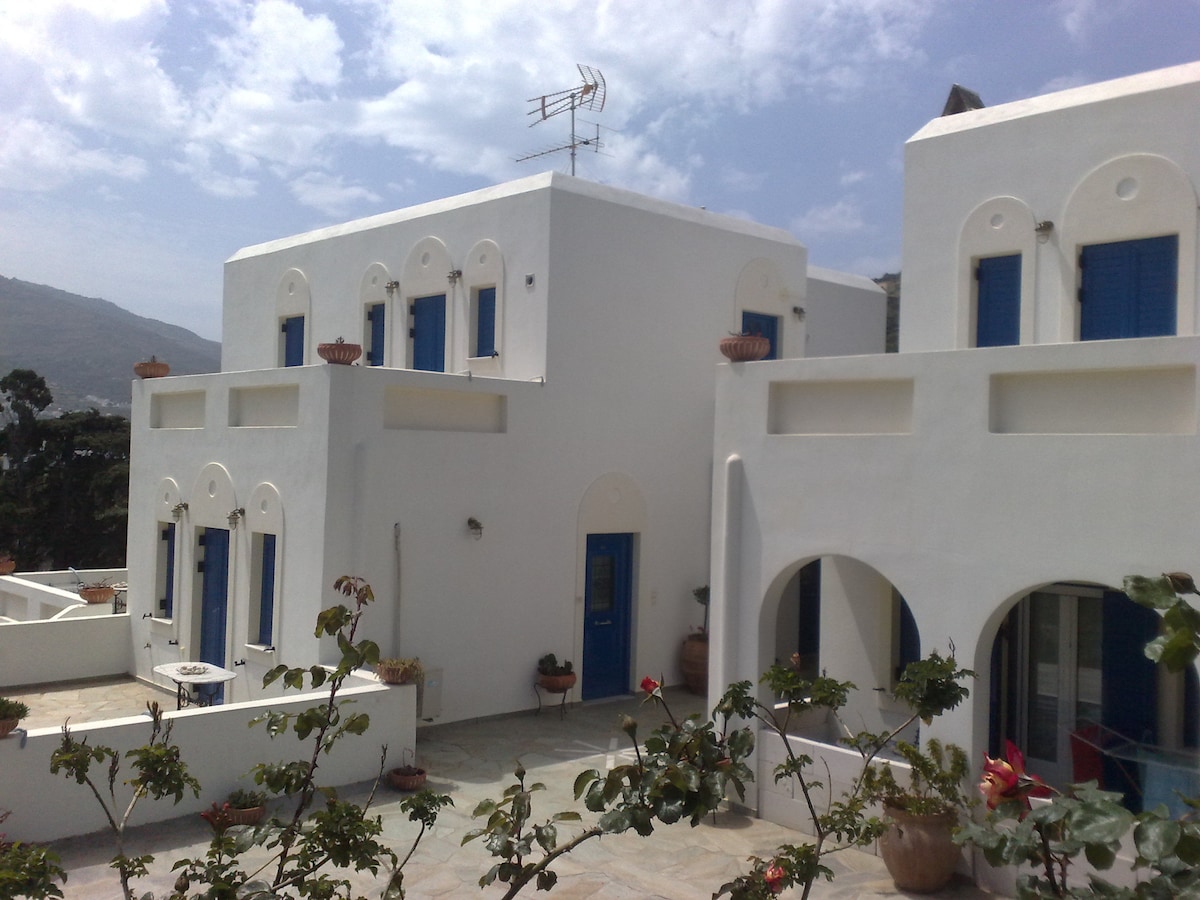 Roula's suites 2 is on the ground floor of the building with an amazing view of the sea. It is located next to the beach of Neiporio of Chora, within walking distance (10 minutes walk) from the city center. In the same building is Roula's suites 1 which can accommodate up to 5 people. We look forward to hosting you!