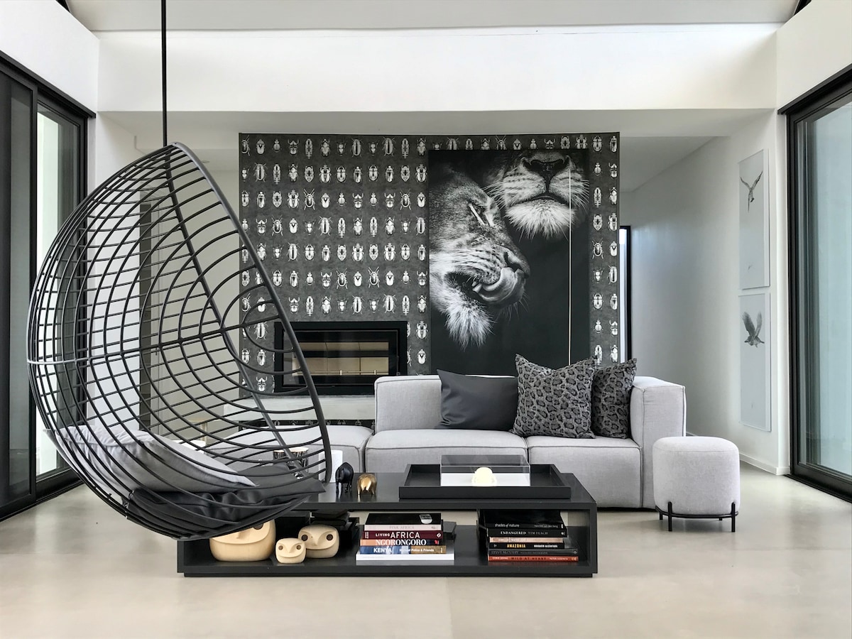 Mangwa House, in Marloth Park is a newly built luxurious & stylish home that sleeps 8 people. The home has 4 bedrooms, all ensuite with sizable bathrooms, all featuring walk in showers. The open plan kitchen, dining & lounge allows for spacious living and relaxing. The kitchen is fully equipped. There is a big patio area with dining and relaxing spaces, a private pool & boma add to the peaceful setting of the bush.