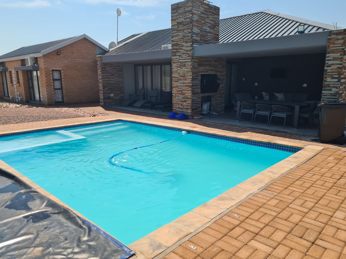 This stylish place to stay is perfect for group trips, golfers and families. It is equipped with aircons, premium DSTV in each room, Foot Massage Machine, Ice Machine, Dishwasher, Wash and Dryer Machine, Free Wife and Wonderful view including free roaming game