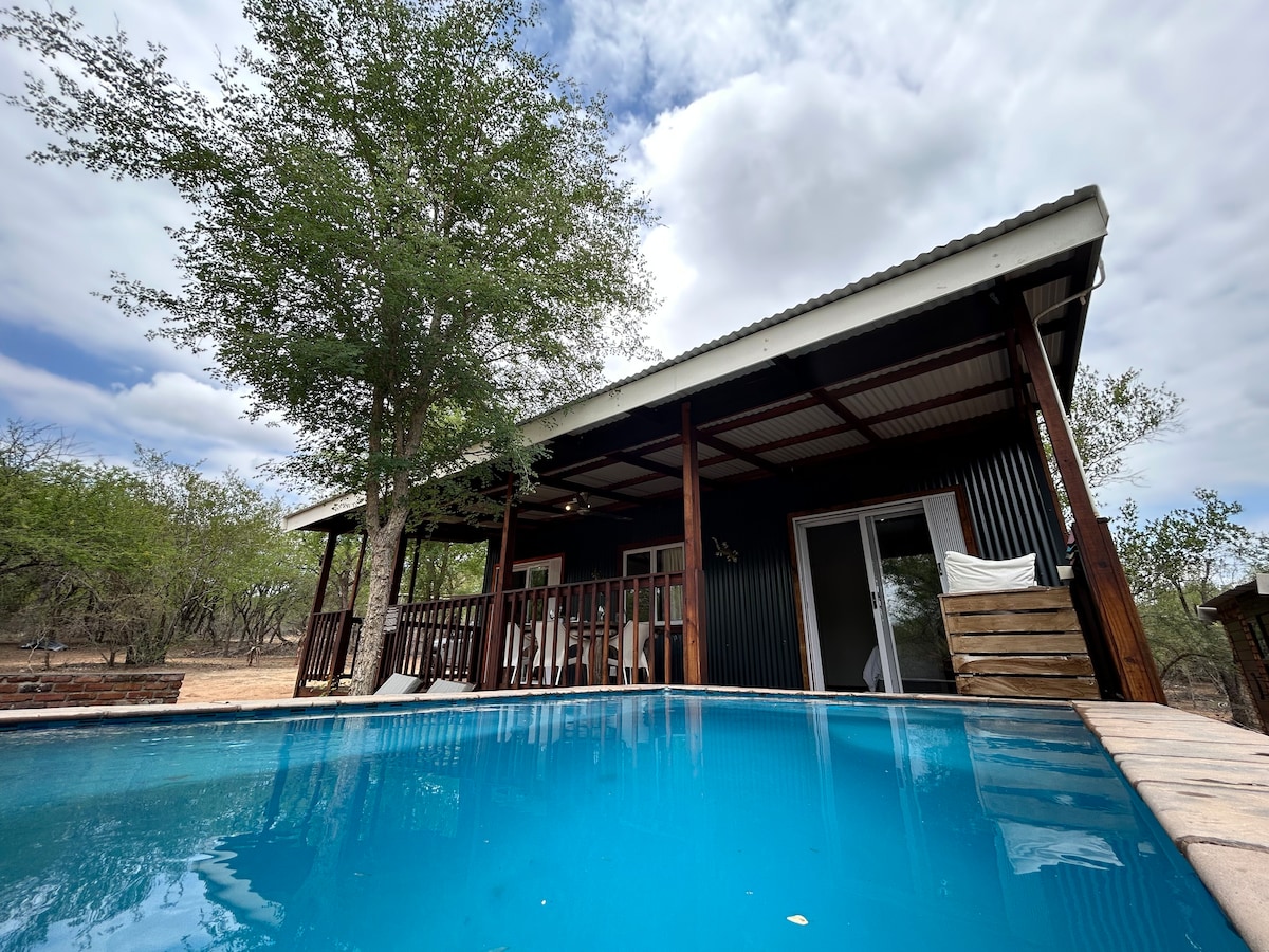 The Wild Bunch Safari House is a special place where the animals roam freely around the house! This detached self-catering house is decorated in African style with a stunning swimming pool (depth 1.6m+martini seat) integrated in the "stoep" (veranda). Attached is an outside (tree) shower and of course a large african braai and firepit. The House also has a Back Up system to help through the dark hours of Loadshedding in SA. Just 20 min from the Crocodile Bridge Gate at Kruger National Park.