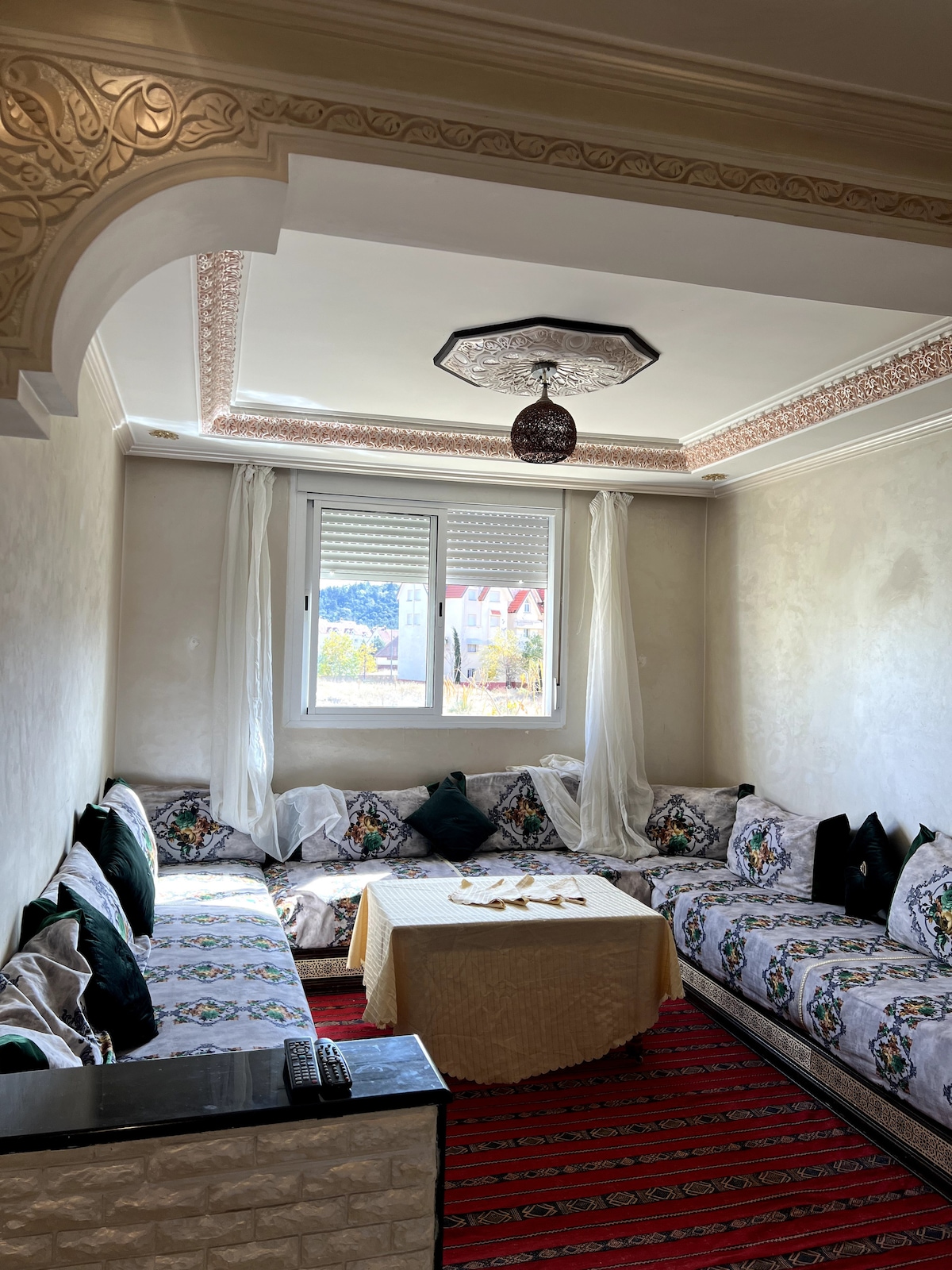 🌲🌲Enjoy an elegant experience in this place located in the center of Azrou 🔔We guarantee: The apartment is thoroughly cleaned by a professional team after every visit. Disinfected bed linens and bath towels are provided. This makes us unique compared to other apartments. Modern apartment 70 m² well located and fully equipped. For couple with child. Modern Kitchen. Free parking 5 minutes from the city center of Ahadaf. Cleanliness, heating, 🍿Netflex SAT TV, IP TV, Fibre Internet...and more
