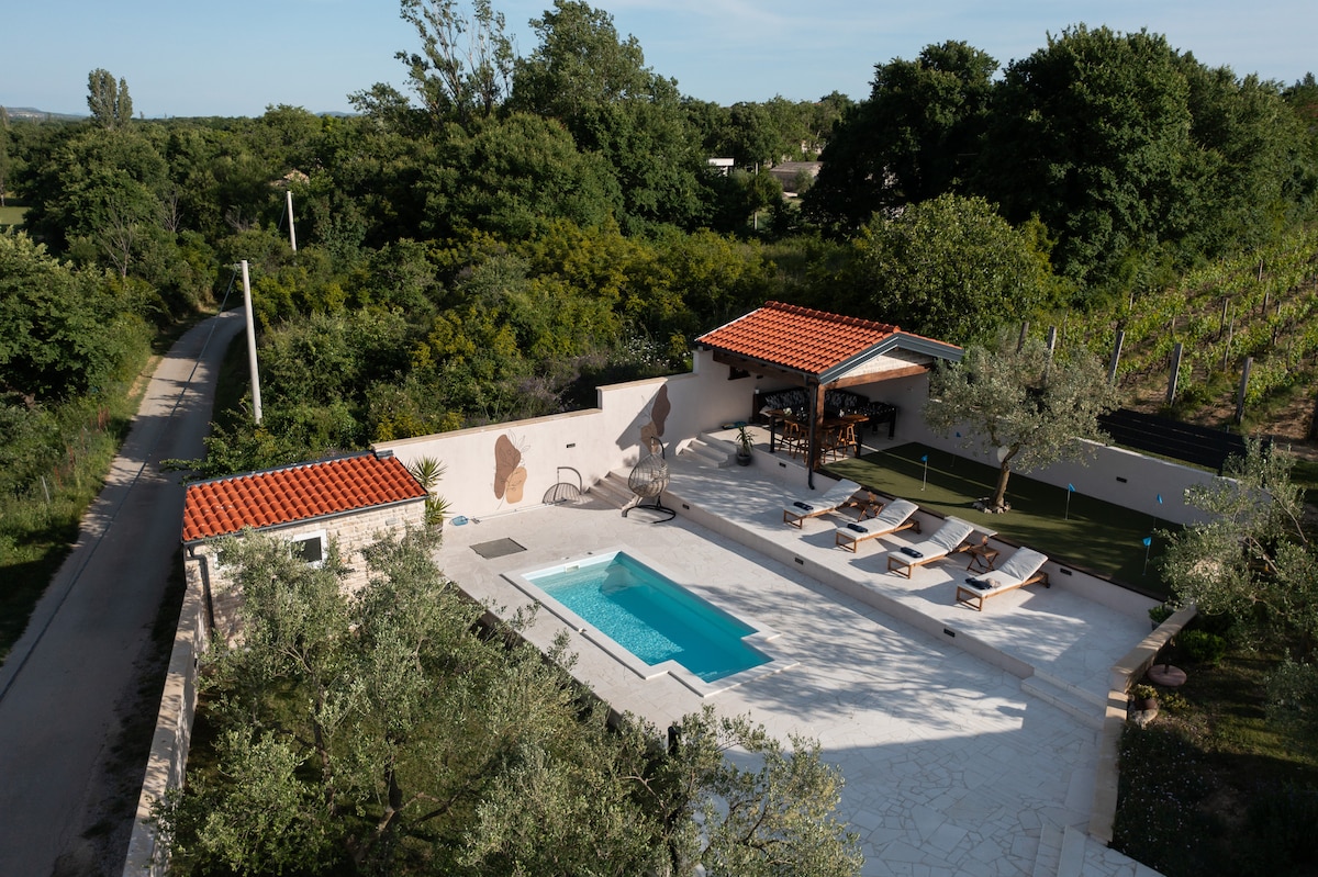House M is settled in the heart of nature, surrounded with vineyards and olive trees. The house is located in a secluded area and is the perfect place for a gateway from your daily life, with family or a group of friends. It's a place where you can see and feel the Dalmatian peaceful environment but still benefit from all the modern amenities such as mini golf, pool and a barbecue spot.