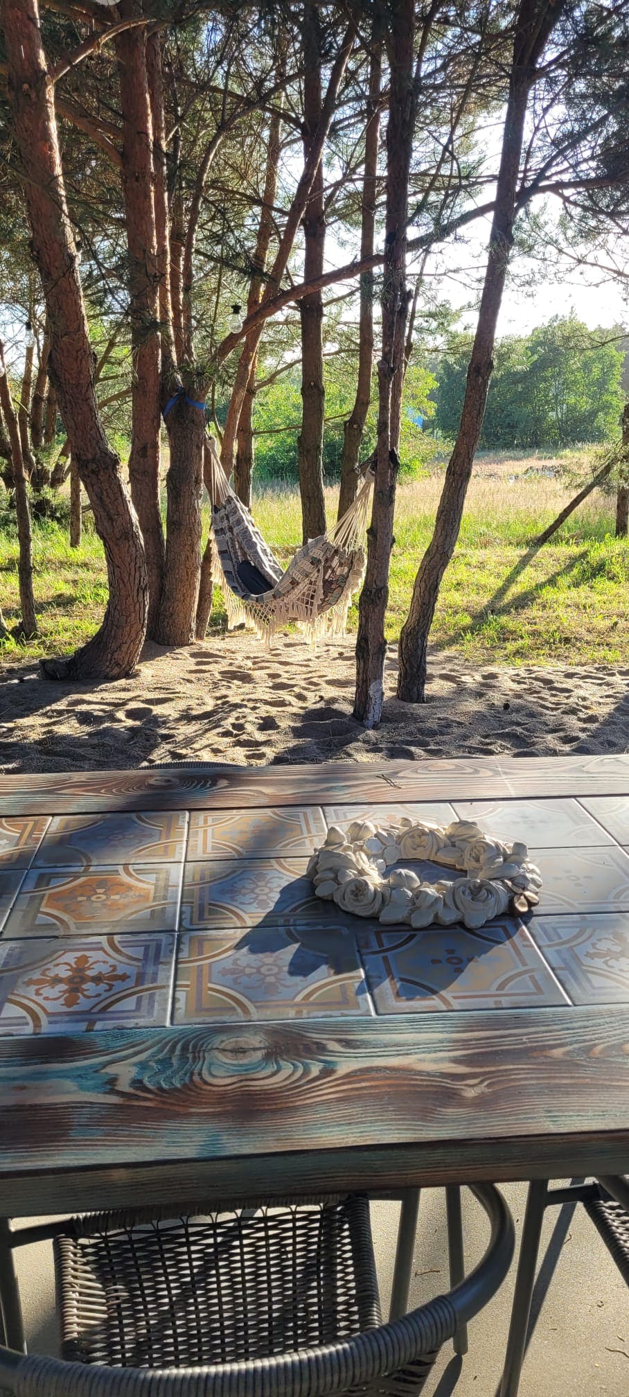 Apartament z ogródkiem, pomiędzy morzem a jeziorem, w sercu rezerwatu przyrody i sosnowego lasu, 3 min spacerem do plaży. Do dyspozycji gości prywatny, zadaszony i przestronny taras, salon z w pełni wyposażonym aneksem kuchennym, sypialnia, łazienka, garaż podziemny i rowerownia. Duże okna pozwalają naturze wnikać do wnętrza apartamentu, dzięki czemu cały czas obcujesz z przyrodą. Na terenie osiedla - saunarium, baseny, jaccuzii, siłownia i strefa spa (za opłatą).