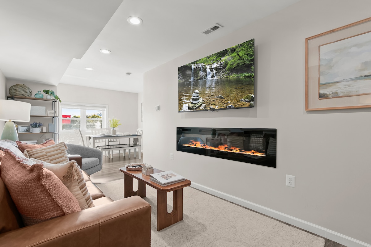 - Sunlit family rm with electric built-in fireplace & smart TV - Dining for 6, smart TV, electric fireplace and Multi-lighting options for the mode - Fully-equipped kitchen, coffee bar, knee bar - 2nd Family Rm with Sleeper sofa, prvt bath, books, games, laundry - 2 upstairs bedrooms with ceiling fans, smart TVs - Common full bath with tub & shower - Prvt parking for 2 - Classic front porch seating - Central to plenty of restaurant options We're excited to host you. Book Now or Ask me anything