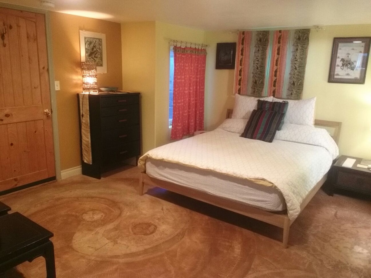 Sweet Hideaway is a little, cozy space for couples or solo travelers looking for a peaceful refuge in the trees, yet only a 10 minute drive to downtown. You will have your own entrance and enjoy a Tempurpedic queen bed, a smart TV, your private bathroom, a dining/kitchenette area with a bar table and stools, mini-fridge, microwave, toaster oven, coffee maker, tea, coffee, treats, utensils, a private table and chairs on the deck over the trees. For 2+ night stay, free use of washer/dryer.