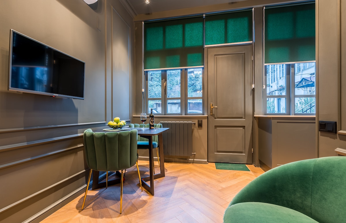 The apartments are located in Old Tbilisi on Ivane Machabeli Street, near Freedom Square. The historic building from the second half of the 19th century, designed in Neo-Moorish style, preserves the authentic spirit of the city. High ceilings, wooden parquet and antique doors are combined with modern comfort. Quiet courtyard, perfect location for walks, cafés and museums nearby. Self check-in and fast Wi-Fi.