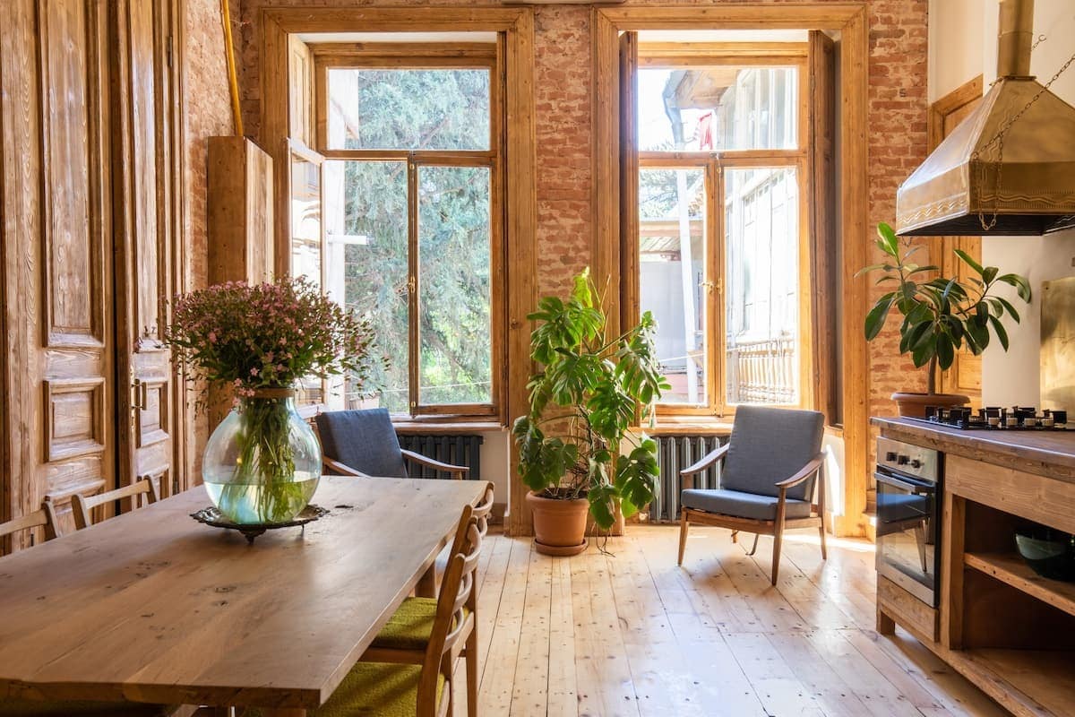 Enjoy your stay in the hottest spot of Tbilisi, surrounded with 5 star hotels: Biltmore, Radisson, Stamba and Rooms and just steps away from Rustaveli metro station and all the main attractions. You will be staying in the vintage loft, located on the top floor of a 1930s stone-built building, with a private terrace and beautiful views. Floor to ceiling windows provide plenty of sunshine, natural light and beautiful views from every room, but there are also heavy curtains for daytime dreamers:)