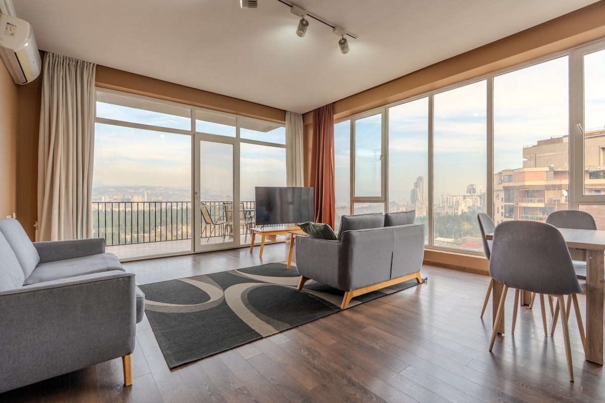 Enjoy your stay in the hottest spot of Tbilisi, surrounded with 5 star hotels: Biltmore, Radisson, Stamba and Rooms and just steps away from Rustaveli metro station and all the main attractions. You'll be staying in one of two vintage lofts with terraces and amazing views located on the top floor of a 1930's stone built building. Floor to ceiling windows provide plenty of sunshine, natural light and beautiful views from every room, but there are also heavy curtains for daytime dreamers:)