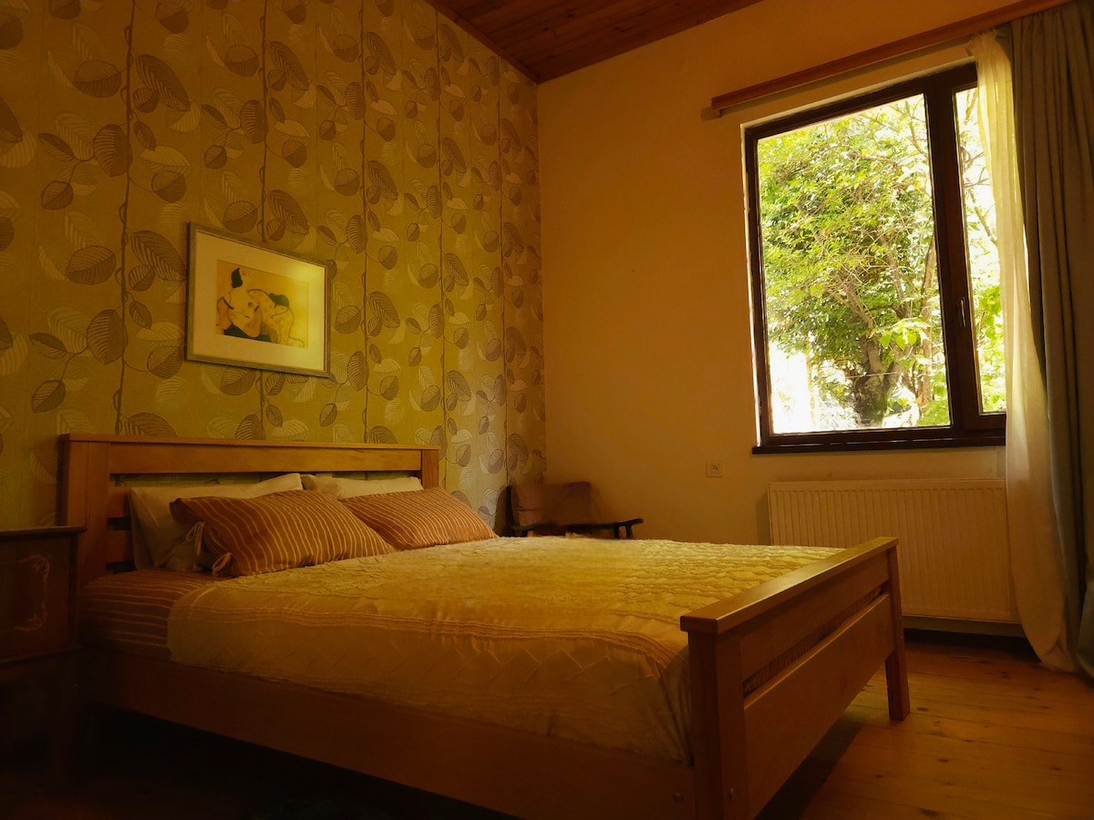 The Perfect Hideaway-where timeless elegance meets the serenity of nature. Unwind in a private jacuzzi, rejuvenate in the sauna, and curl up by the fireplace as the sun sets over breathtaking national park views. Wake up to the sounds of nature, wander along scenic forest trails just beyond your door, and end your day with an authentic Georgian wine tasting in our cellar. This enchanting retreat blends rustic beauty with refined comfort-for those seeking peace, romance and unforgettable moments.