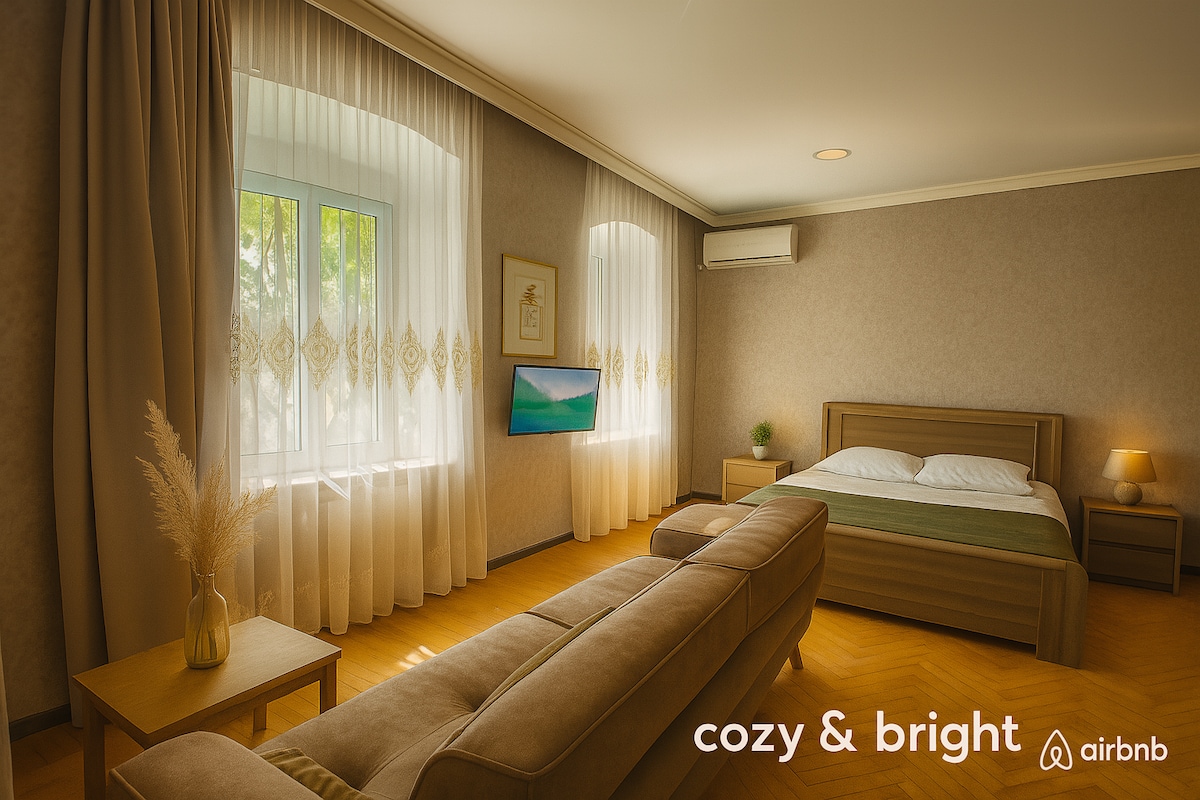 apartment is located in the old district of city center, only 3 minute walk to the subway station Rustaveli at historical Kakabadzeebi st.(inventor of a 3Dcamera).The location is perfect as you don’t need any public transport, you can walk everywhere! It's semi-BASEMENT(!), with windows. The house has status of cultural heritage ( built at the end of 19th century). You will have a private entrance, airco, kitchenette, microwave, iron, fridge, private bathroom, cosy room and TOP location.