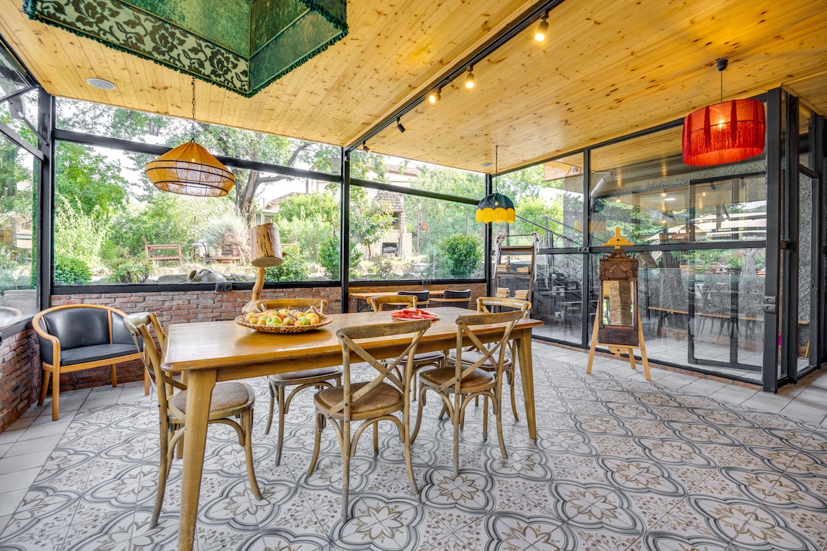 Welcome to Tatin, a charming hotel located right next to the historic walls of Svetitskhoveli Cathedral in the heart of Mtskheta, Georgia's ancient capital city. Just 15 kilometers away from the bustling streets of Tbilisi, you can reach Mtskheta, the most historical and peaceful city in the region. Tatin has been a part of this landscape since 2016, initially as a cafe. A year ago, we expanded our offerings to include two beautifully decorated hotel rooms.