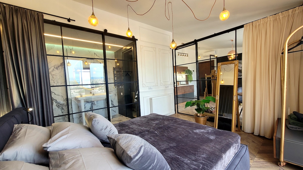 Loft is located in one of the most charming districts of old Tbilisi - Vera, on the top 12th floor, with a terrace, overlooking a breathtaking city view. A must visit Wine factory #1 with wide variety of bars and restaurants is minutes walk away The interior in Parisian boutique style is a work of a local award winning designer Floor to ceiling windows provide plenty of sunshine, natural light and beautiful views even from the shower:) but there are also heavy curtains for daytime dreamers:)