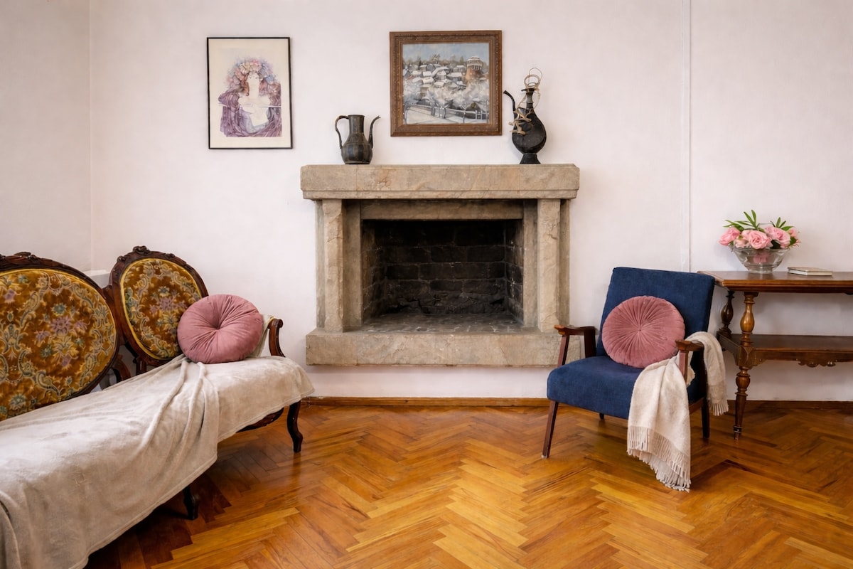 This gorgeous, pattern clashing apartment is an explosion of fun color. This is an outstanding modern design apartment, in the historical 120 years old building that is cultural heritage of Georgia. It is located in the heart of old Tbilisi in Sololaki district. Recently renovated 3 bedrooms and 3-bathroom apartment features unique touches like 4m height celling, book collection and fireplace. 2 of the 3 BDRs are master BDRs. What’s more, there is a private balcony with a beautiful garden view.