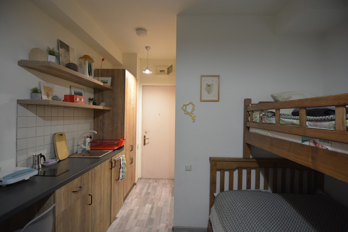 The apartment is in the center of the city, very easy to reach, just 2 minutes walk to/ from metro station Technical University. Everything is too close, bus station, shops, markets, pharmacies etc. The apartment is good for up to 2 guests, it is not big (30 Square meters) but very comfortable.