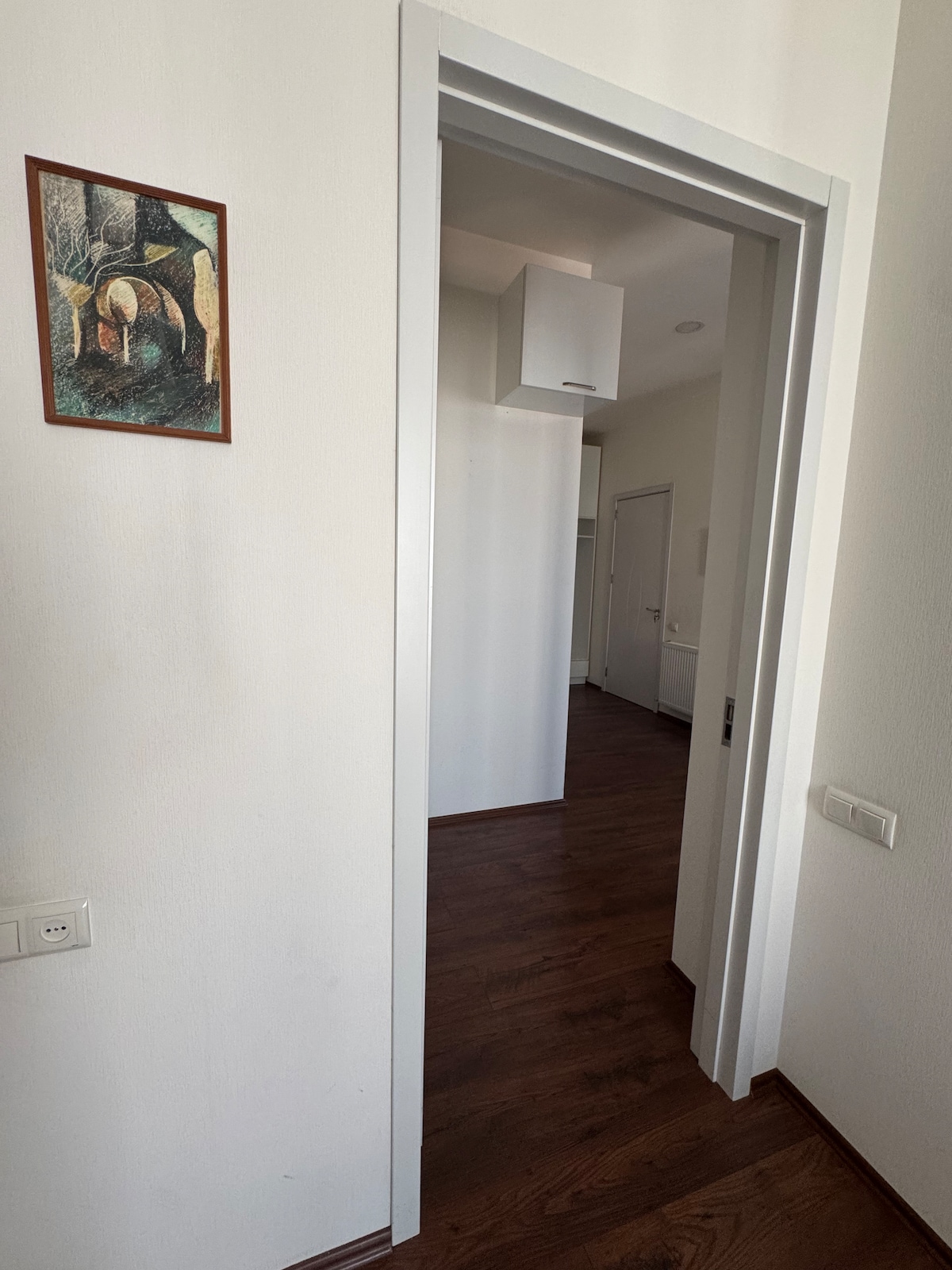 New apartment front of the city court, cozy and bright. With 2 balconies and 2 bedrooms. Both bedrooms have windows and doors that lead to the back balcony. The apartment is equipped with the latest appliances and furniture, The front balcony overlooks the court and the street side. 50 meters away is XL Nikora (supermarket) and Magnet. Under the building carrefour supermarket. Video surveillance in the entrance and also in the elevator for security. Every room have smart tv.