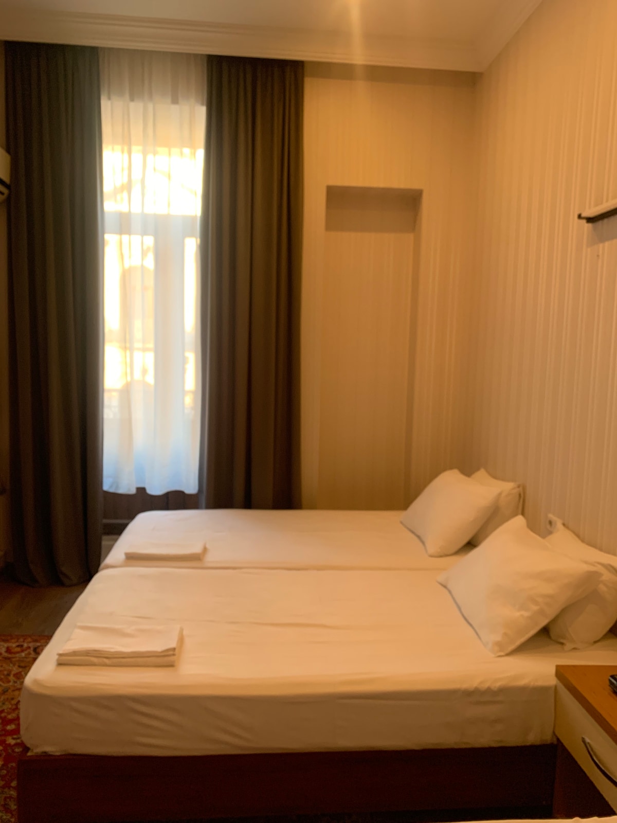 We have 24 hour staff and guest can check in any time. Our Hotel is located in the very center of the Old Tbilisi, just 200 meters away from Freedom Square, Main touristic and shopping areas of the city are in 2 min walking Distance. Hotel is new ans stylish. We have fully equipped shared Kitchen and dining Area, where guest can cook by yourself. Also we have shared Laundry. Guest can enjoy in our courtyard with open pool. Pool is working seasonally from end of june till September.