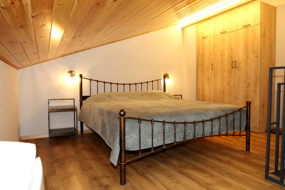 This amazing three-story house is centrally located, just a 15-25 minute walk from Holy Trinity Cathedral of Tbilisi, Avlabari metro station, Old Tbilisi, Maidan, and more. The house boasts exquisite interior design with decorative wallpapers from Dutch designers, mosaic tiles, and plants. You'll find all the amenities including appliances, furniture, and a smart TV for a comfortable stay. Special features include an infrared sauna and a spacious attic on the third floor with breathtaking views.
