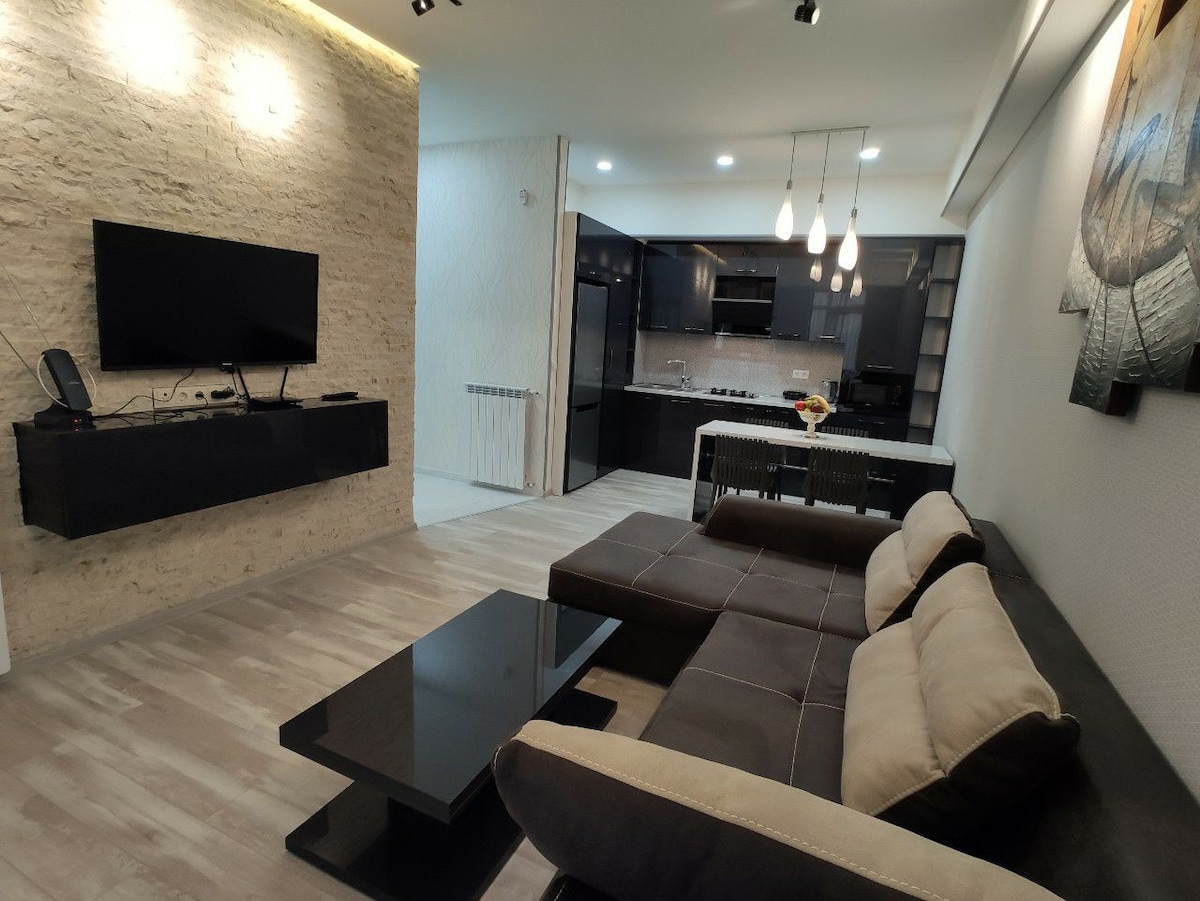 The apartment is a prestigious ecological clean area on the territory of the hippodrome. Studio with all conveniences, one bedroom large bathroom, a kitchen is equipped with home appliances and it has a large balcony. The total area is 55 sq.m. Апартамент находится престижном экологический чистом районе на территории бившего ипподрома. Номер студио со всеми удобствами, ванной комнатой, кухней, с прихожим и с большим балконом. общая площадь 55 кв.м.