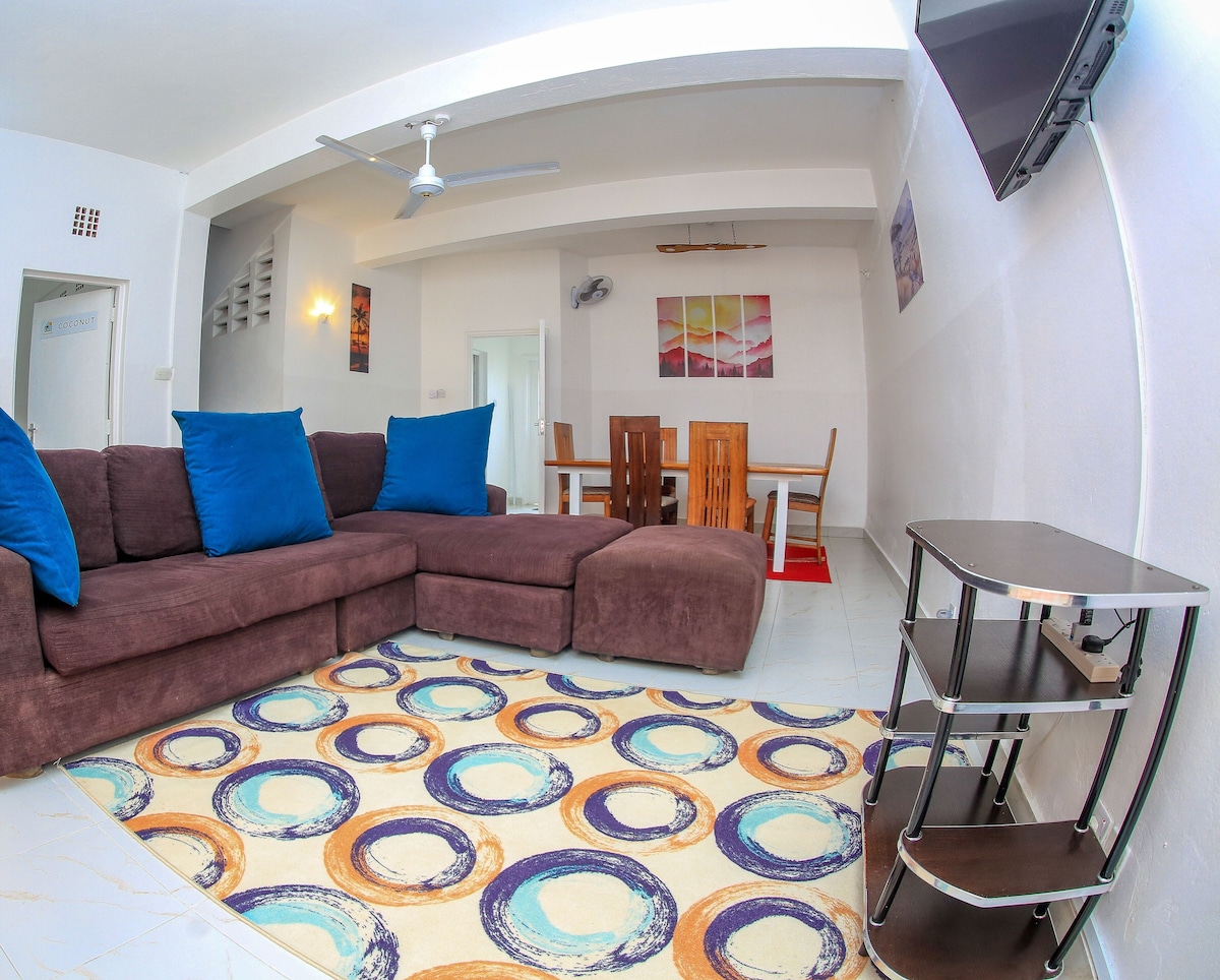 Bring the whole family to this great place with lots of room for fun. Set in Bamburi area of Mombasa, within 2 km of the Beach and 3 km from City Mall, Twin Palms is a new 2 Bedroom apartment offering quiet, spacious and clean accommodation as well as free private parking for guests. Minutes away from everything the city has to offer, including public transport, restaurants, historic museums, parks, the city’s major markets and malls, multi-cultured street food vendors and white sandy beaches