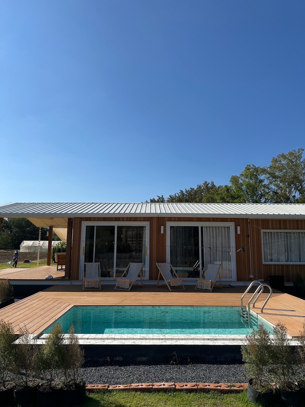 有机农场上的僻静三卧室山间住宅,带泳池