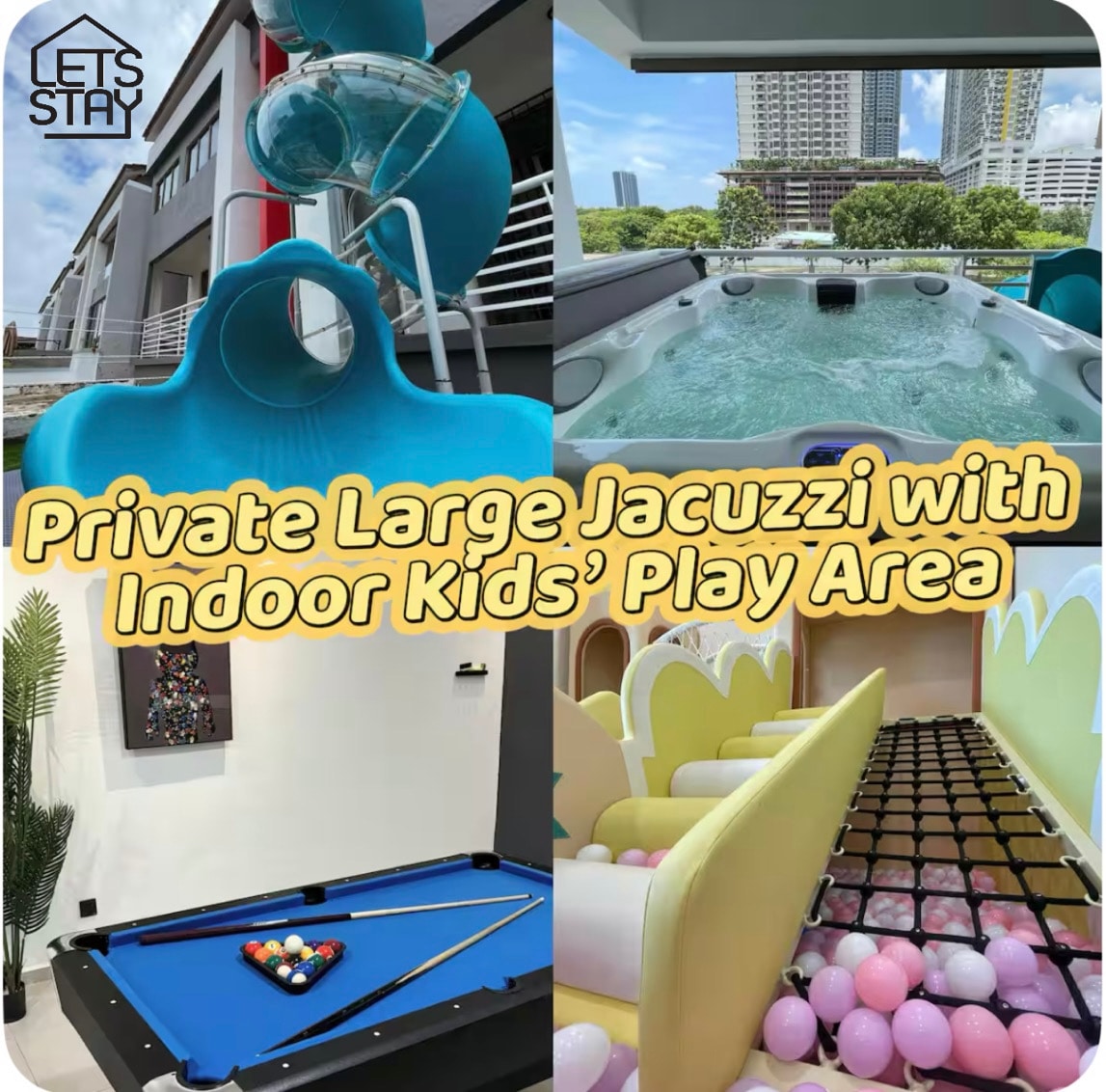 MaxJovial Holiday Management Private Jacuzzi Pool Villa for 3 pax • Premium Design • Full City View Private Jacuzzi Pool • Private Jacuzzi Bubble Pool with Normal Temperature Water Only • 1 Bed Room with Queen Size Bed • 1 Single bed in Living • Balcony with outdoor chair and table • Exceptional Feeling Located in the heart of Melaka near to the tourist attractions and famous restaurants in Melaka . 马六甲开放式家庭式套房(4人住) • 舒适高级的设计 • 附带阳台 • 设备完整 • 客厅以及浴室及私人泳池 坐落在甲市中心,地理位置优越 -旅游景点以及著名美食近
