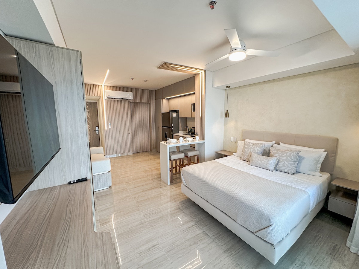 Disfruta de un apartasuite DE LUJO con ACCESO DIRECTO A LA PLAYA, PISCINA y VISTA ESPECTACULAR desde sillas VIP en un balcón de 12m². Perfecto para descasar o teletrabajar. El ApartaSuite incluye cocina equipada, lavadora, y todo lo necesario para sentirte como en casa. A solo 5 minutos del aeropuerto y 10 minutos del centro histórico, tendrás la combinación ideal de comodidad y lujo. ¡Reserva ahora y vive una experiencia única!