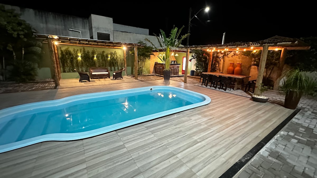Casa de Praia com piscina, jardim e churrasqueira