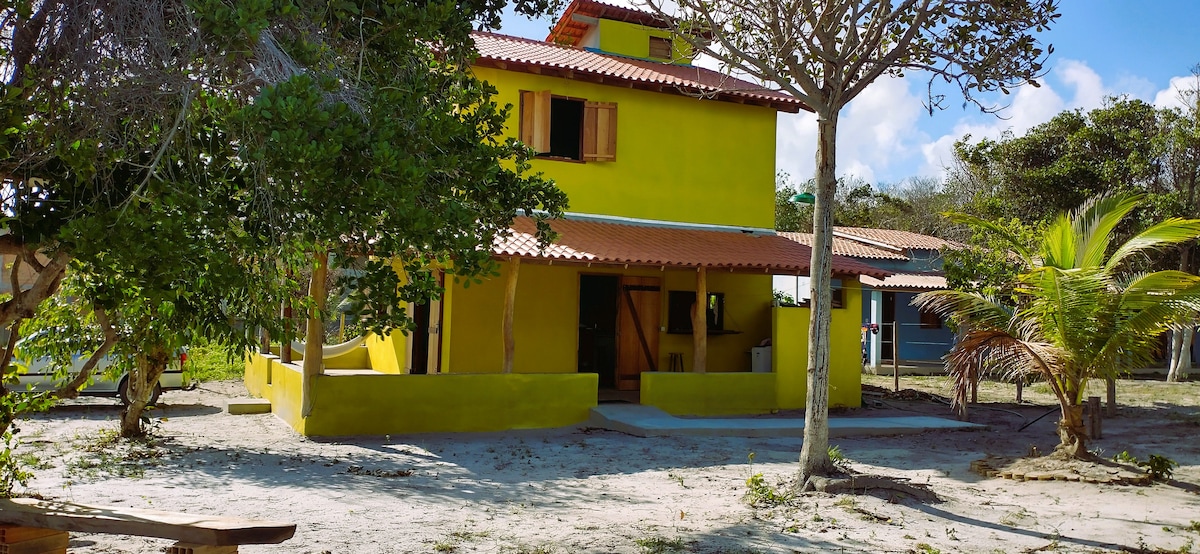Casa a 50m de praia paradisíaca. A casa Dunas do Mar é uma típica casa de praia, com a brisa do mar penetrando em suas amplas portas e janelas, proporcionando contato direto com o mar e a natureza. São 135 m² com 2 pavimentos em 650 m² de terreno arborizado. Capacidade para acomodar até 09 pessoas e vagas para estacionar 03 carros. A Vila dos Lençóis é um pequeno povoado com clima típico de roça à beira-mar, com população de pescadores e pequenos agricultores e índice zero de criminalidade.