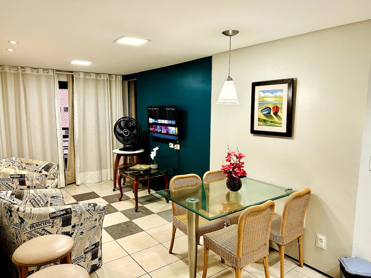 Localizado em plena Av.Beira Mar, onde as pessoas passeiam a pé, praticam esportes. Encontra-se próximo à famosa Feirinha de Artesanatos da Beira Mar, Mercado dos Peixes, além de restaurantes, bares, mercados, farmácias, sorveterias, etc. Dispomos de piscina. O flat tem cozinha bem equipada e é todo mobiliado! Há serviço de camareira para limpeza diariamente. Possui 2 quartos com ar condicionado e guarda roupas, sala com tv a cabo, wi-fi. AP aconchegante e confortável