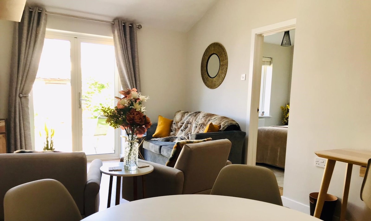 This stylish open plan coastal appartment is perfect for relaxing break for two by the seaside. Featuring freestanding bath, king sized bed, ensuite show room, large sofa, AppTV, Nesspresso machine, fridge freezer and cooking facilities, this apartment has all you need to enjoy a relaxing break. With the convenience of a free parking space and a small outdoor court yard. In an ideal location minutes walk from the beautiful Avon beach with pub, shops and takaways all in easy reach.