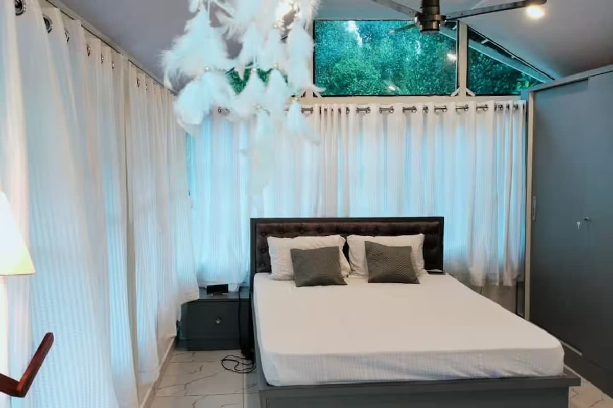 This is a cottage that is very stylish with wooden finish everywhere and is located literally inside the coffee plantation with lots of greenery all around. The cottage has great views of the plantation and has awesome vibes. The cottage has a king size cot bed and a queen size sofa bed with very comfortable beds. The Cottage also has a work table, dressing room, large patio with furniture and an attached bathroom. I can easily say this cottage is as good as any 5 star resort cottages!