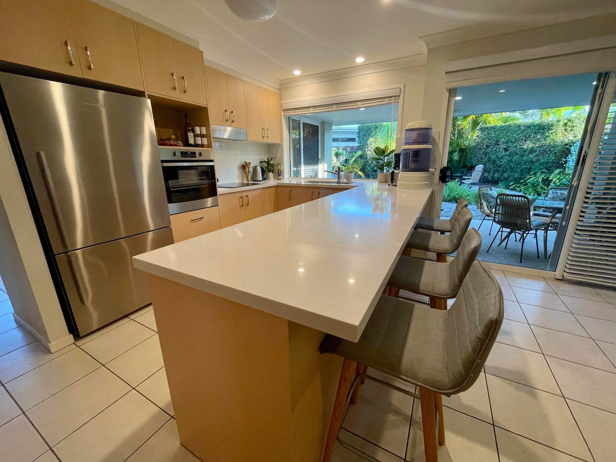 Discover a blend of comfort and convenience at our home, in the middle of the Coast between Noosa (30 mins north) and Caloundra (in the south). Whether you’re here for a getaway, an event or business, our place offers everything you need. The fully self contained house is bright, airy and well equipped. We’re a 200m stroll from Maroochy River, a few minutes by car from Mudjimba beach, & Mooloolaba & its restaurants are 16kms. Maroochy airport is 5 mins drive, and Aust Zoo is 25mins away.