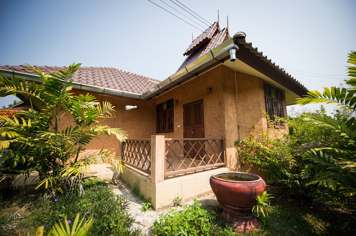 House it's on the foot hill in a private area very safe,quiet,...only 350 meter to hot springs, lake, restaurants and a private large swimming pool and only 10-15 minutes to Chiangrai night bazaar Big C Bungalow is about 60 square meter big bathroom big balcony where you can enjoy the garden and the view , the swimming pool is on the property and there is a mountain view! kitchen and a big garden on 12 rais land