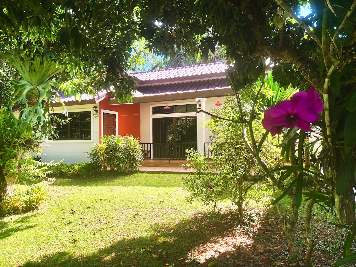 Boutique Homestay & 2 Thai style bungalows including our personal service during your stay. They are set up in a lush garden with 13-meter-long swimming-pool, including playgrounds with swing and trampoline for children. There is a large covered terrace with pool and mountain views where you can enjoy your breakfast, lunch and dinner. Daily stunning sunsets from our lush garden. There are a total of 6 bedrooms with en-suite bathroom, where we can accommodate large family or group.