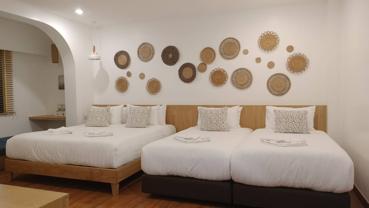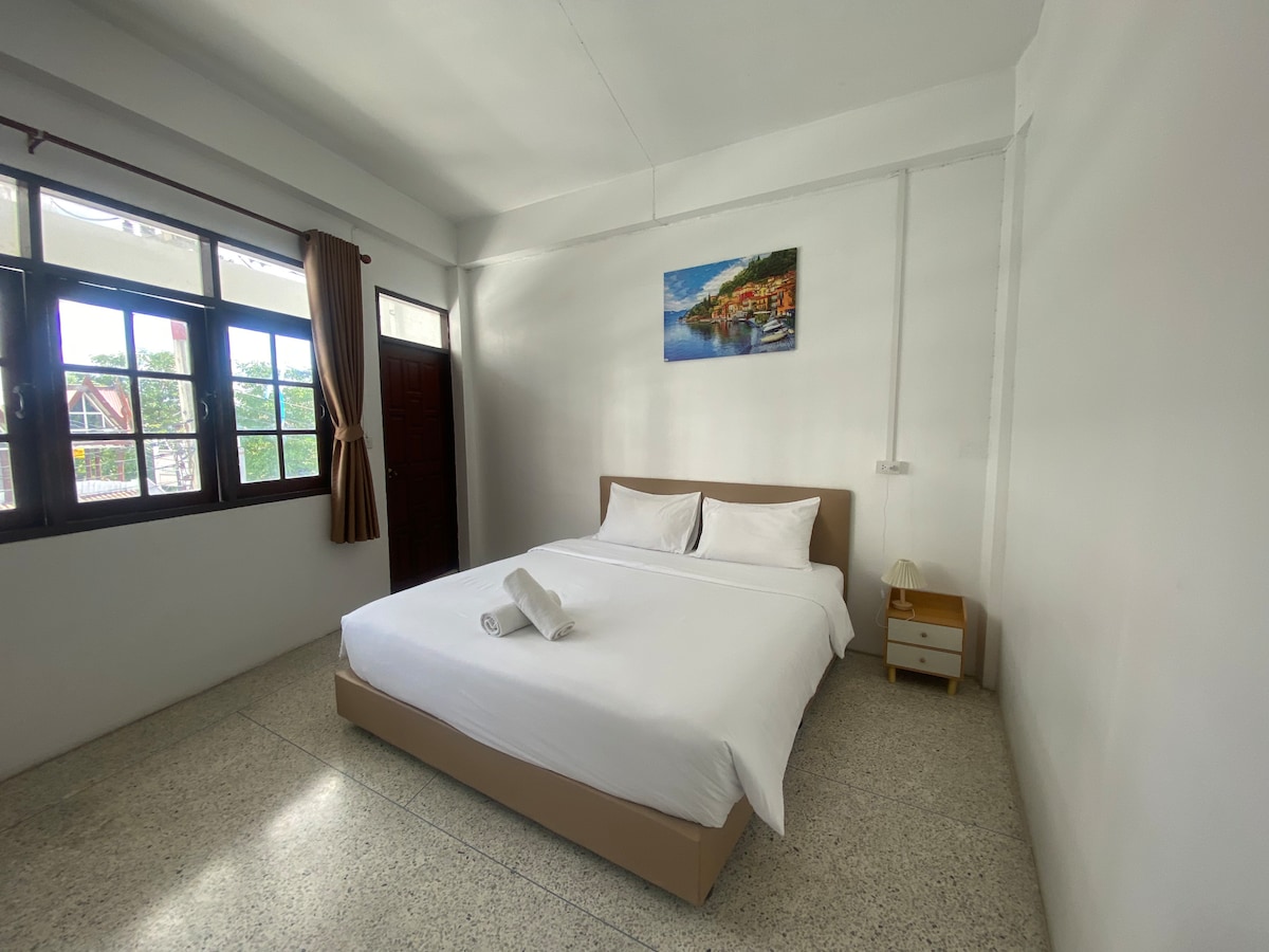 ที่พักสุดกิ๊บเก๋ห้องพักสไตล์มินิมอลเตียงขนาด 6ฟุต สำหรับผู้ใหญ่ 2 ท่าน พร้อมอุปกรณ์อำนวยความสะดวกครบครัน พื้นที่ระเบียงและห้องน้ำส่วนตัว ทำเลดี จะเที่ยวที่สุดฮอตไหนในย่าน ก็ไปง่าย ทำเลดี ไม่มีอาหารเช้า
