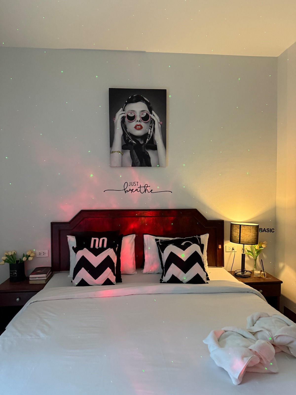 En-Suite Room has one bedroom (One King size bed) + another Single bed in a living room, One bathroom, kitchenette zone with microwave, refrigerator & dinner table, Two TVs, Two ACs. Furniture, Fixture & necessary amenities are all set. We accommodated 70 units with 5 room types. With a separate building of clubhouse, you’ll find it private enough but easy to access just steps linkage from 3rd & 4th floor to swimming pool and gym. Swimming Pool & Gym Opening Hours: 10.00 am. - 08.00 pm.