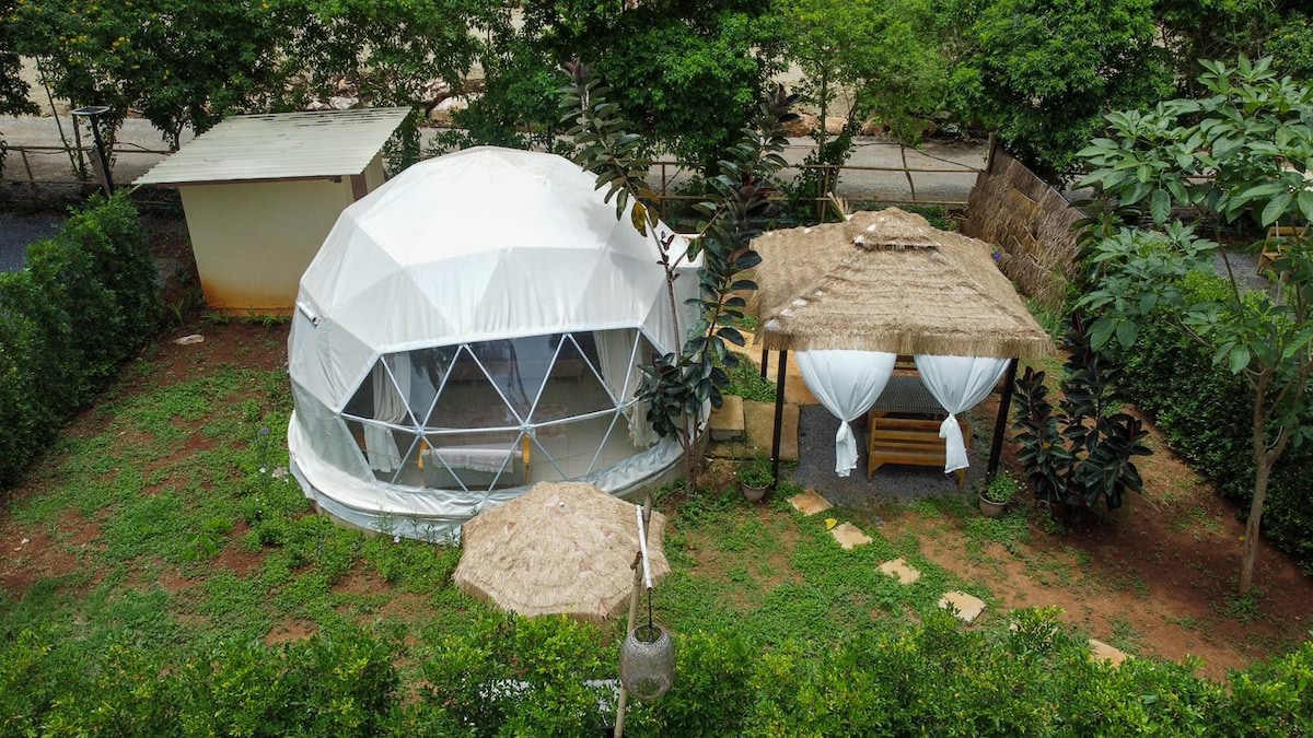 This private villa is perfect for families four guests with private hot water bathroom, clean bedding. The front of the villa opens to landscaped grounds, with views of Khao Yai and near Wang Bon Reservoir. The villa also offers shared swimming pool, kitchen, and a barbecue area, allowing guests to cook meals. The kid-friendly activities and play areas, such as swings, a viewpoint tower, a mini zipline, and the swimming pool. Guests can visit Khao Yai National Park and Wang Bon reservoir.