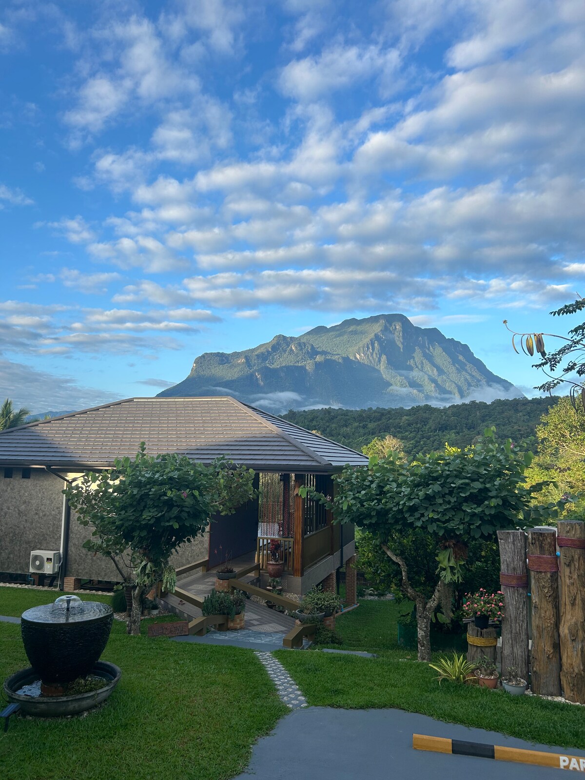 Secluded private house and garden. Dramatic mountain view. Located on the edge of the Jungle and at the base of Chiang Dao mountain. Shaded by 40+meter high indigenous Don Yang trees. Mature avocado, mango, guava, lime and banana trees. Clear mountain stream running through garden in wet season until November, can listen to it trickle from the porch. 10 minutes walk to very good cafes, Thai/Western restaurants, temples, caves, nature trail and scooter/bicycle rental.